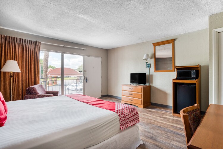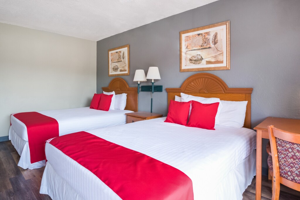 Отель OYO Hotel Mustang Silverspring FL 2 звезды, адрес на карте Силвер Спрингс, 5001 E Silver Springs Blvd, с характеристиками номеров и возможностью онлайн бронирования на сайте vashotel.ru , цены проживания и удобства.