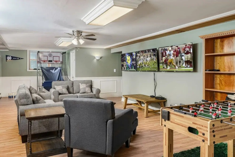Активный или пассивный отдых — выбор за вами. Коттедж «The Irish Estate l Large Patio Games Ncaa Theme BBQ 4-bedrooms 3 905 sq ft» находится в Саут-Бенде. Этот коттедж расположен в 5 км от центра города. Рядом с коттеджем — Парк Роузлэнд-Таун, Парк Клэй-Тауншип и Центр конференций и торжественных мероприятий Gillespie.