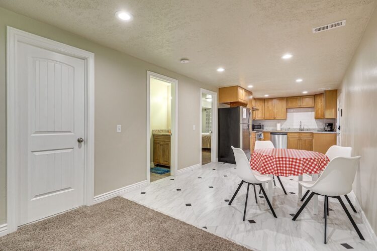 Отель Cozy Basement Unit w/ Home Theater in South Jordan, адрес на карте Саут-Джордан, 11194 Tippecanoe Way, с характеристиками номеров и возможностью онлайн бронирования на ресурсе ВашОтель.RU , стоимость проживания и удобства.