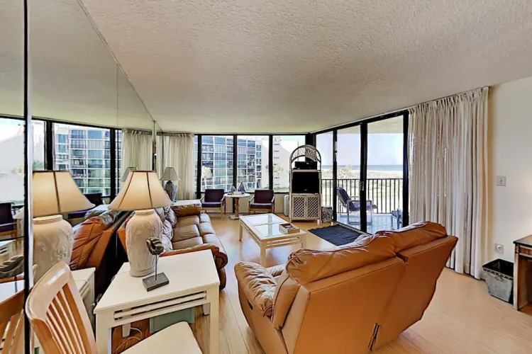 Отель Modernized Oceanfront Beach 2 Bedroom Condo, адрес на карте Сент-Огастин, 1 Dondanville Rd, с описанием номеров и доступностью онлайн бронирования на ресурсе vashotel.ru , стоимость проживания и удобства.
