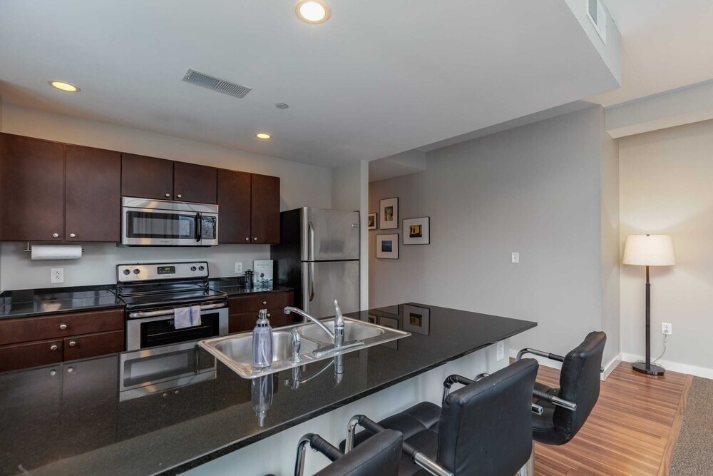 Отель Spacious DT 2BR With Free Parking by Zencity, адрес на карте Сент-Луис, 1226 Olive St, с описанием номеров и доступностью онлайн бронирования на площадке vashotel.ru , цены проживания и удобства.