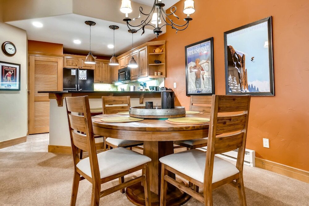 Курортный комплекс EagleRidge Lodge & Townhomes by Steamboat Resorts предлагает забронировать 2-6-комнатные апартаменты, оформленные в теплых тонах и обставленные дорогой мебелью из натуральных материалов. В каждом из них есть гостиная с камином и балкон, откуда открываются панорамные виды на горы, а еще – ЖК-телевизор, стиральная машина, телефон и хорошо оборудованная кухня.