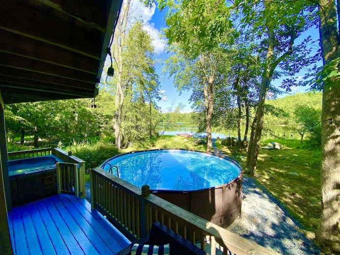 Отель Waterfront Chalet W hot-tub & Pool by RedAwning 3 звезды, адрес на карте Страудсберг, 436 Lakeside Drive, с описанием номеров и доступностью онлайн бронирования на ресурсе vashotel.ru , цены проживания и удобства.