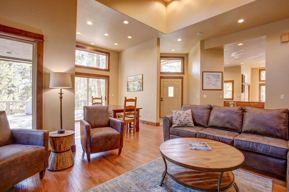 Отель Stunning W/ Hot Tub & Expansive Deck 4 Bedroom Home 4 звезды, адрес на карте Санривер, 18199 Oregon Loop 47, с характеристиками номеров и возможностью онлайн бронирования на площадке ВашОтель.RU , цены проживания и удобства.