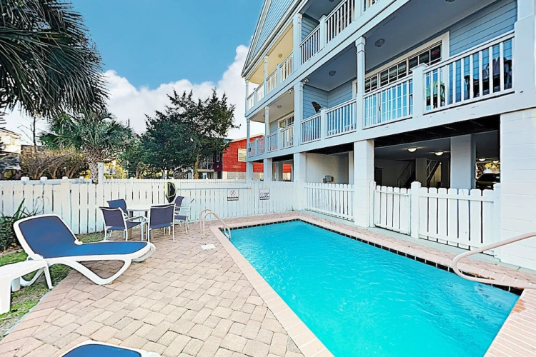 Отель Changes In Attitude: Beach W/ Pool 4 Bedroom Duplex 3 звезды, адрес на карте Серфсайд-Бич, 117A N Dogwood Dr, с характеристиками номеров и возможностью онлайн бронирования на сайте vashotel.ru , стоимость проживания и удобства.