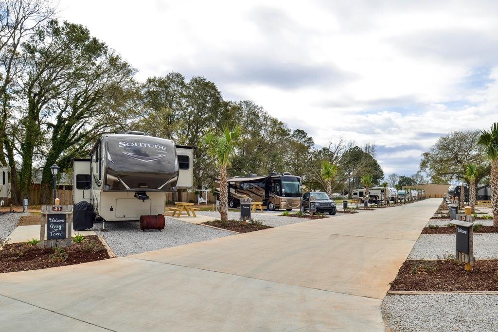 Отель All About Relaxing RV Park – A Cruise Inn Park, адрес на карте Теодор, 8950 Three Notch Road, с характеристиками номеров и доступностью онлайн бронирования на площадке vashotel.ru , стоимость проживания и удобства.