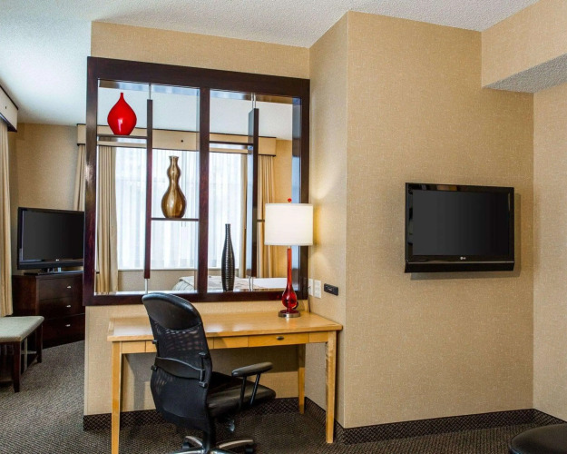 Трехзвездочный отель Cambria Suites Traverse City находится в городе Траверс-Сити, штат Мичиган, США. Отель расположен в 10 минутах пешком от центра города. До залива Гранд Траверс, озера Мичиган от отеля всего 10 минут пешком. Аэропорт Черри Кэпитал находится в 2 километрах от отеля.