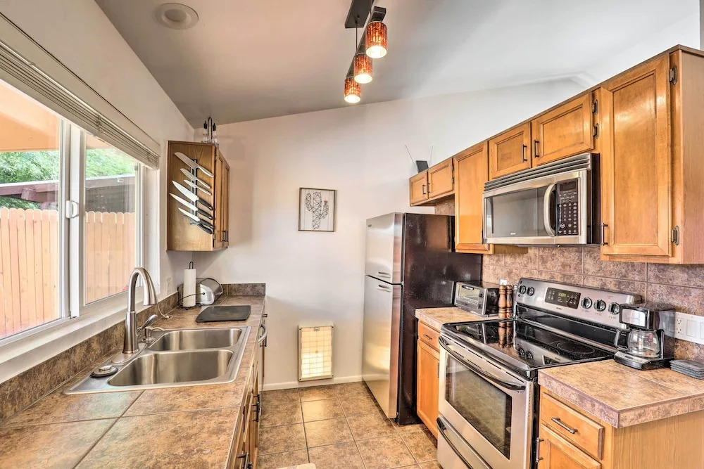 Активный или пассивный отдых — выбор за вами. Коттедж «East Tucson House w/ Private Backyard & Fire Pit» расположен в Тусоне. Этот коттедж находится в 13 км от центра города. Рядом с коттеджем можно прогуляться. Неподалёку: Поле для гольфа Fred Enke Golf Course и Парк William Clements.