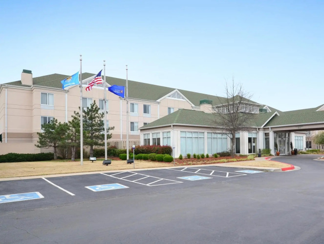 Отель Hilton Garden Inn Tulsa Airport 3 звезды, адрес на карте Талса, 7728 E Virgin Ct, с описанием номеров и возможностью онлайн бронирования на сайте vashotel.ru , стоимость проживания и удобства.