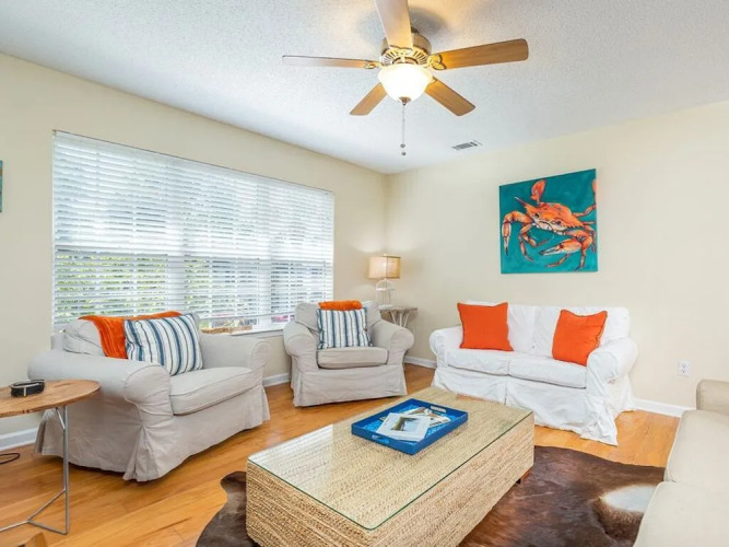 Хотите сбежать от суеты города и отдохнуть? Коттедж «The Flying Pigs Cottage» располагается в Тайби-Айленде. Этот коттедж находится в самом центре города. Утром — выпейте кофе, наблюдая из окна за жизнью города. Рядом с коттеджем — Пляж Мид, Пляж Тайби-Айленд и Пляж Бэк-Ривер.