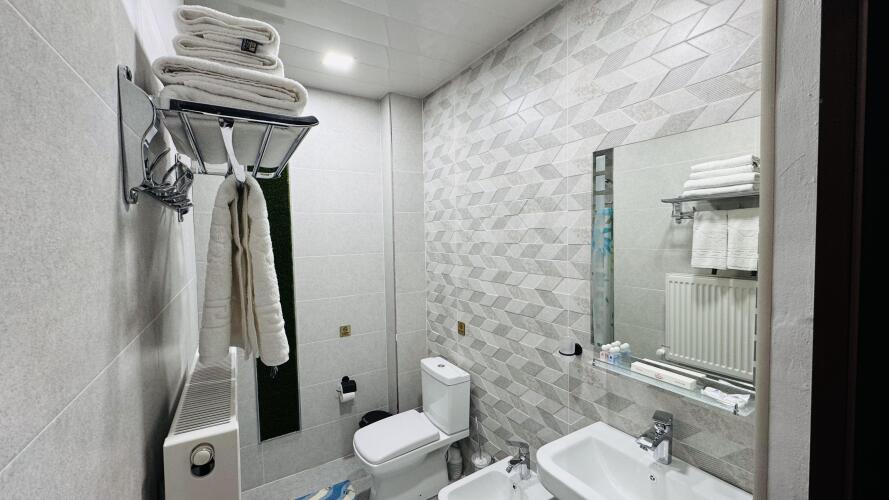 В номере гостей ждут телевизор и халат. Перечисленные услуги есть не во всех номерах.