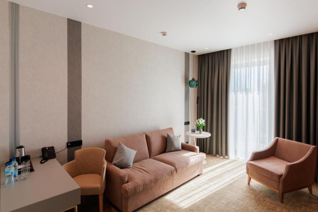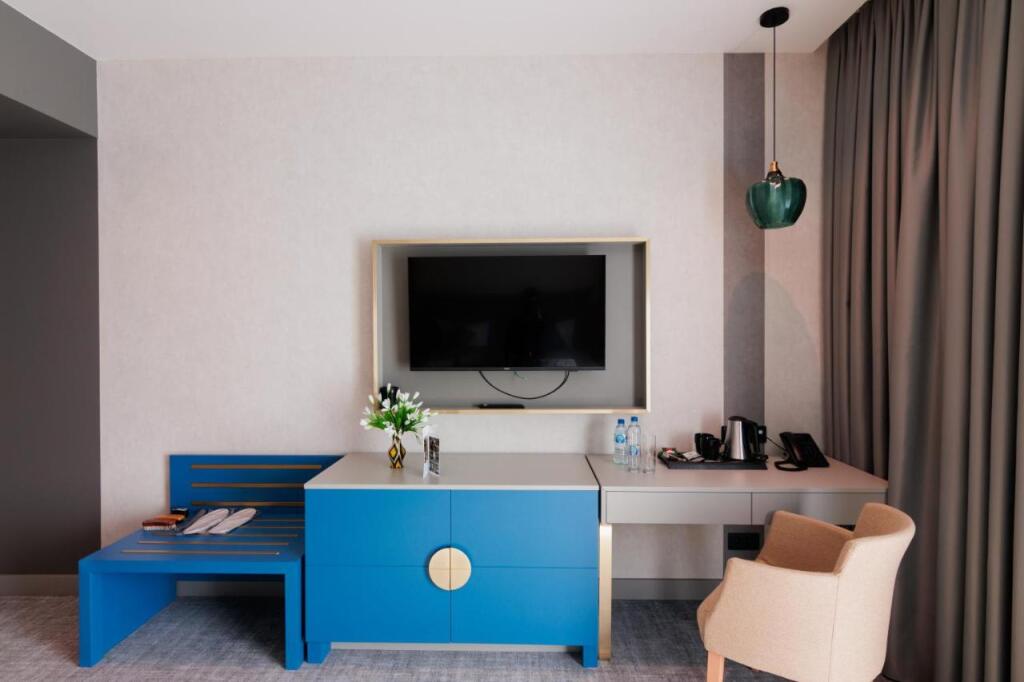 В номере вы найдёте телевизор и халат. Оснащение зависит от выбранной категории номера.