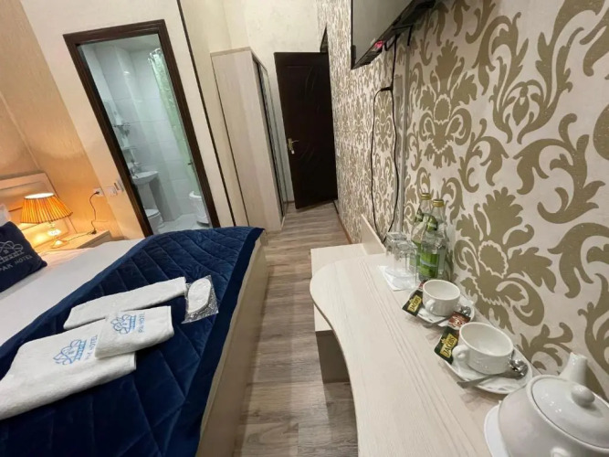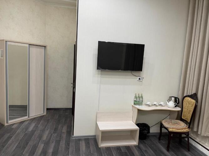 В номере вас будут ждать телевизор и тапочки. Оснащение зависит от выбранной категории номера.