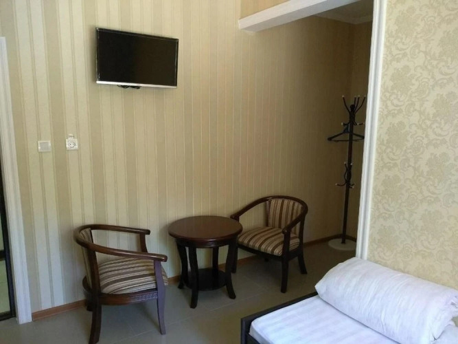 Номер уютно обставлен и оснащён необходимым, чтобы отдохнуть после долгого и насыщенного дня. Имеются душ, телевизор и тапочки. Оснащение зависит от выбранной категории номера.