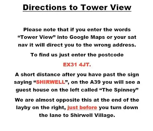 Отель Tower View, адрес на карте Барнстапл, Tower View Shirwell, Barnstaple, EX31 4JT, United Kingdom, с характеристиками номеров и доступностью онлайн бронирования на сайте ВашОтель.RU , стоимость проживания и удобства.