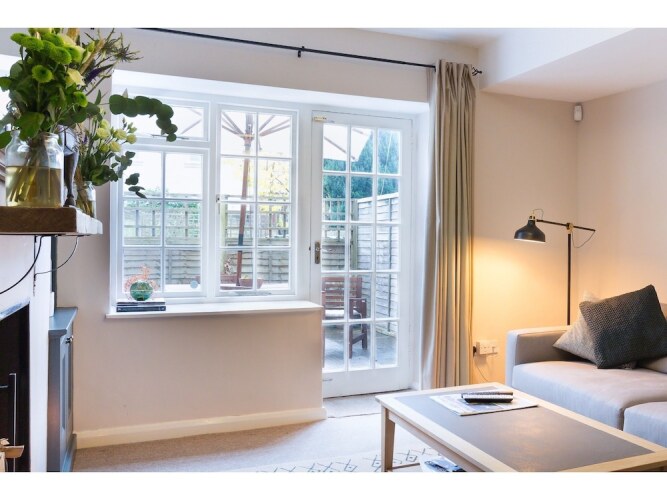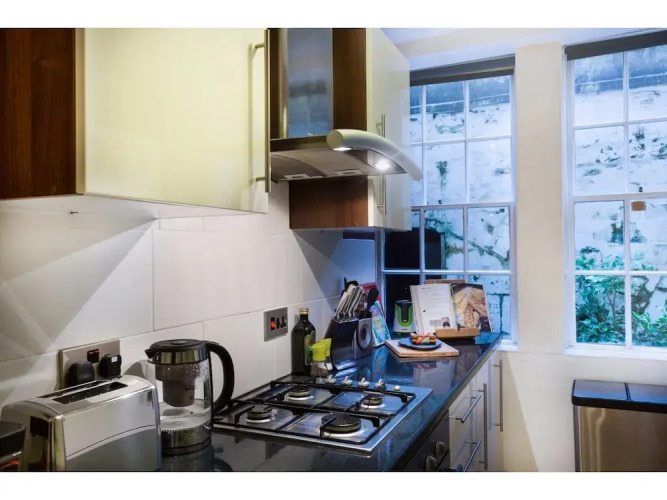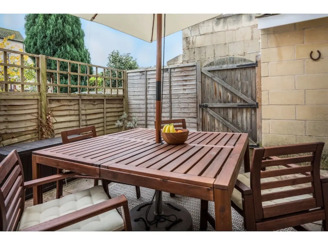 Отель Spacious, Garden Flat for 4 in Bath, адрес на карте Бат, Flat 1, 32 New King Street, с описанием номеров и доступностью онлайн бронирования на ресурсе ВашОтель.RU , цены проживания и удобства.