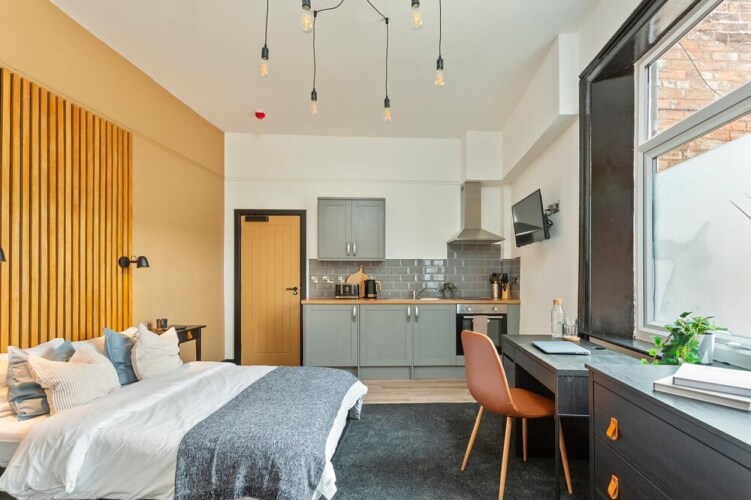 Отель OnPoint Modern 1 BR Studio City Centre, адрес на карте Дерби, 56 Osmaston Rd, с описанием номеров и возможностью онлайн бронирования на площадке vashotel.ru , цены проживания и удобства.