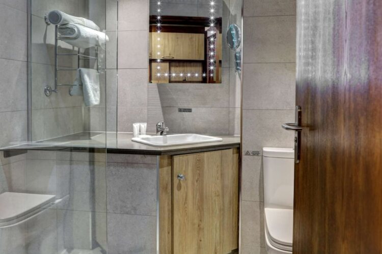 В номере вас будут ждать душ, телевизор и халат. Оснащение зависит от выбранной категории номера.