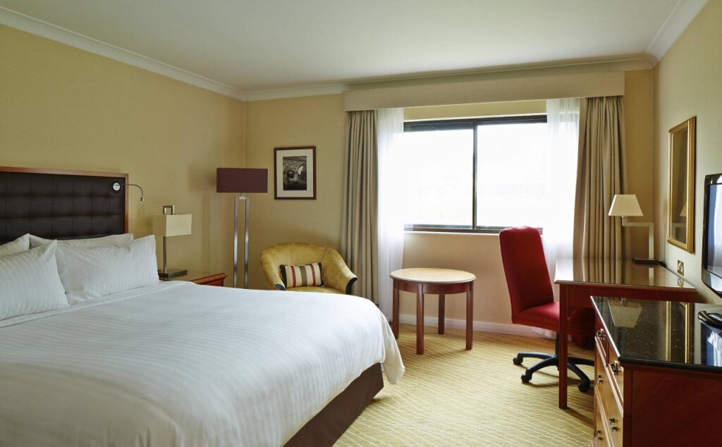 В четырехзвездочном отеле Marriott Edinburgh 245 номеров с кондиционерами, сейфами, рабочими столами и телефонами. В номерах отеля предоставляется Wi-Fi за дополнительную плату. В вашем распоряжении спутниковое телевидение, кофеварка, фен, утюг и гладильные принадлежности. Осуществляется обслуживание номеров.
