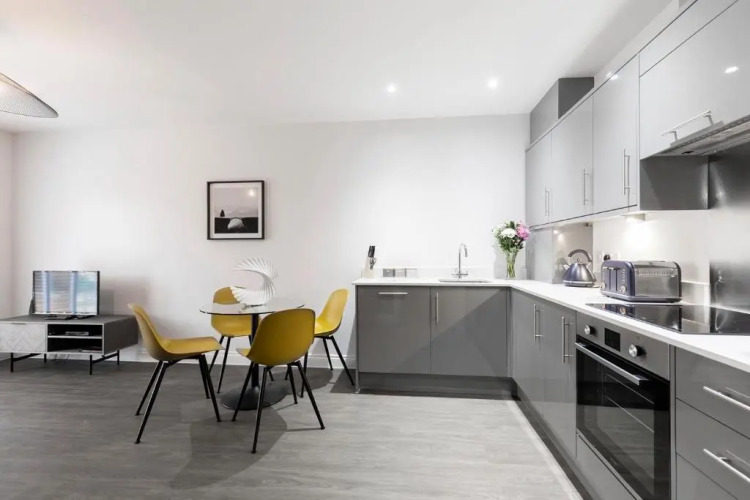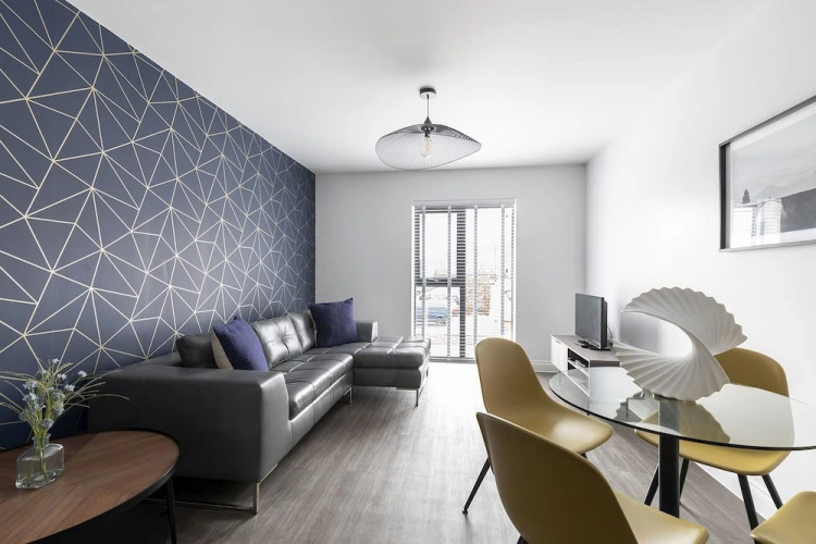 Отель Elliot Oliver -Stylish 2 Bedroom Apartment With Parking In The Docks, адрес на карте Глочестер, Flat 7, Mariners Court, The Docks, с описанием номеров и возможностью онлайн бронирования на ресурсе vashotel.ru , цены проживания и удобства.