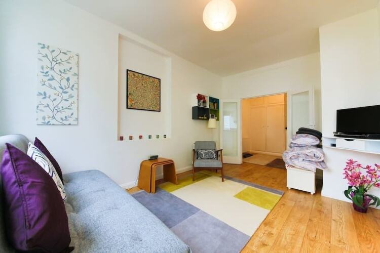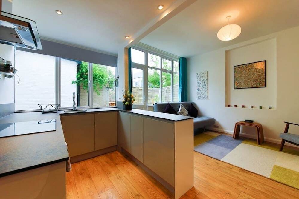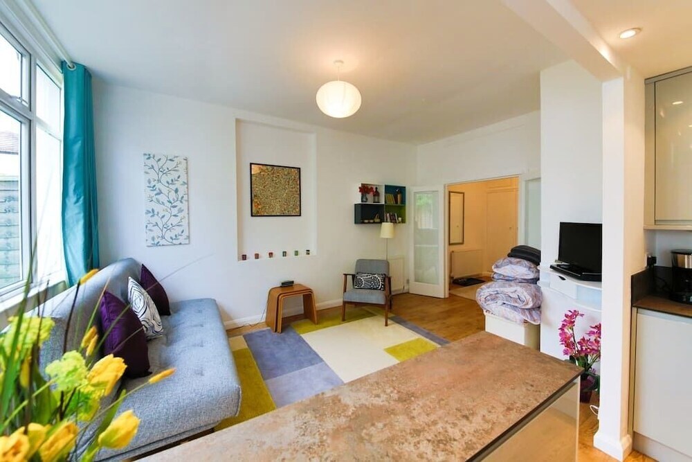 Отель Bright and Spacious 1 Bed Flat With Garden, адрес на карте Хов, 33 Westbourne Villas, с характеристиками номеров и возможностью онлайн бронирования на ресурсе vashotel.ru , цены проживания и удобства.