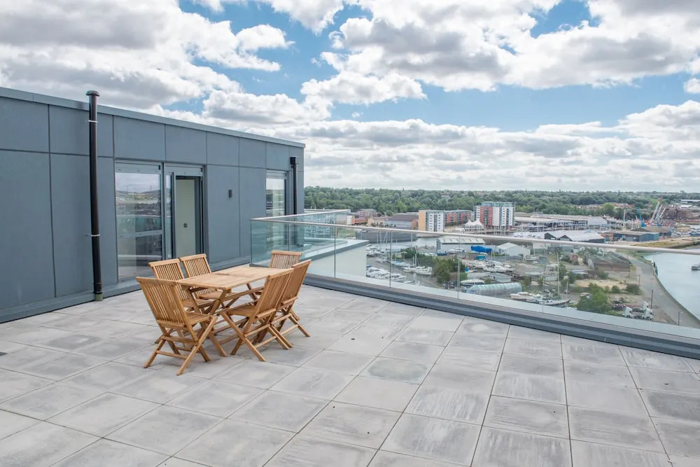 Отель Toothbrush Apartments - 3 Bed Penthouse, адрес на карте Ипсуич, 104 The Winerack, с описанием номеров и доступностью онлайн бронирования на ресурсе vashotel.ru , стоимость проживания и удобства.