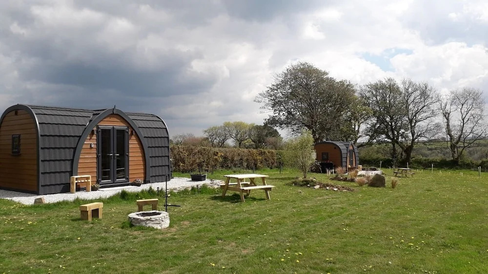 Отель Hornbeam Luxury Eco Pod at Trewithen Farm Glamping 3 звезды, адрес на карте Лонсестон, Trewithen Farm, с описанием номеров и доступностью онлайн бронирования на площадке ВашОтель.RU , цены проживания и удобства.