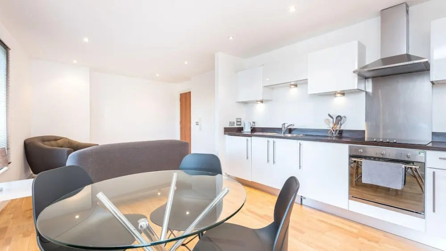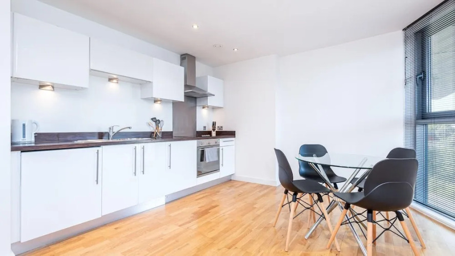 Отель Amazing apartment with waterside views!, адрес на карте Лидс, Gotts Road Flat 12 Montague, Leeds, LS12 1DW, United Kingdom, с характеристиками номеров и доступностью онлайн бронирования на сайте ВашОтель.RU , цены проживания и удобства.