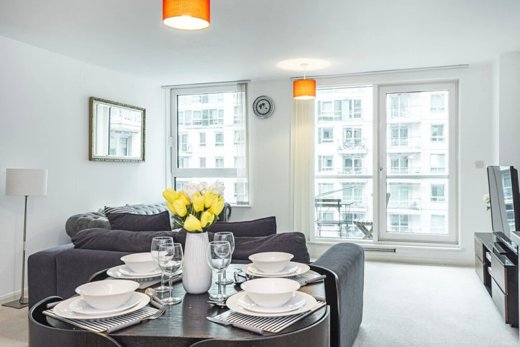 Отель Av Stays Central London 2 Bedroom Riverside, адрес на карте Лондон, 1017 Anchor House George Wharf Vauxhall, с характеристиками номеров и доступностью онлайн бронирования на ресурсе ВашОтель.RU , стоимость проживания и удобства.