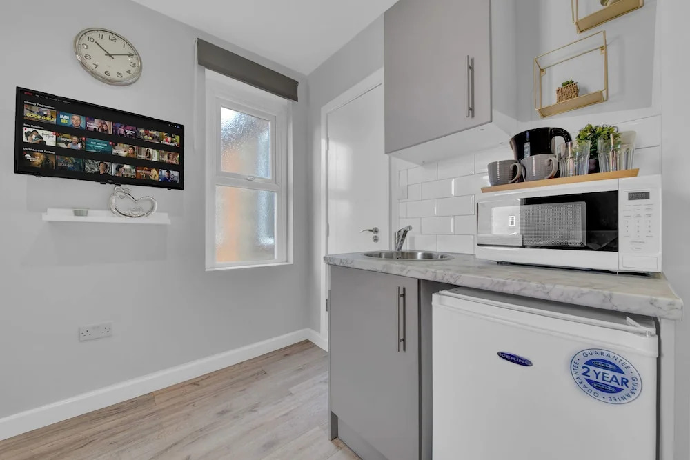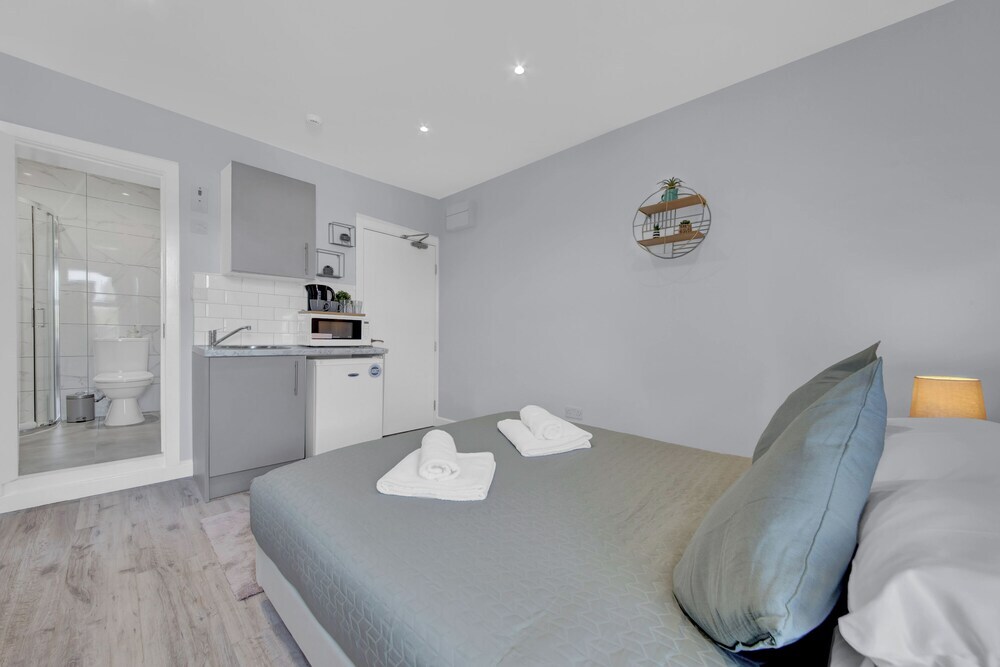Отель Captivating 1-bed Studio in West Drayton, адрес на карте Лондон, 41 Bellclose Road, с описанием номеров и правом онлайн бронирования на ресурсе vashotel.ru , цены проживания и удобства.
