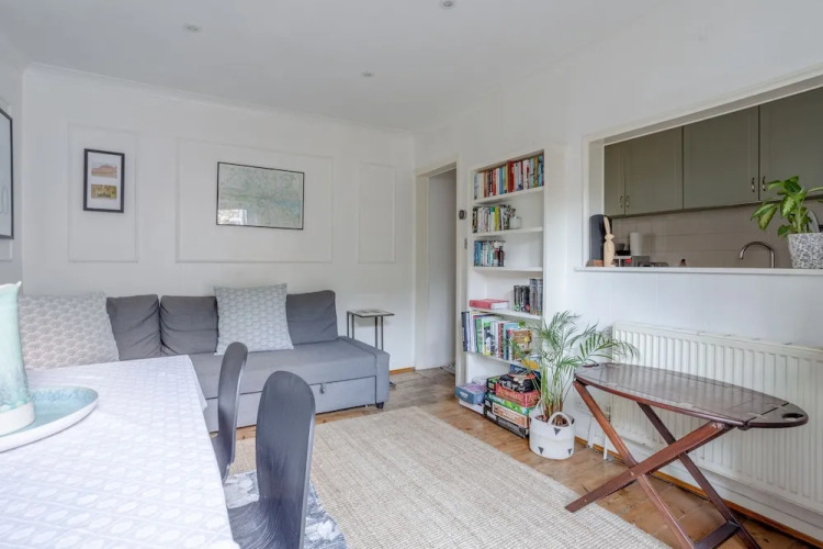 Отель Charming 1 Bed Flat With Patio In Affluent Fulham, адрес на карте Лондон, Dawes Road, с характеристиками номеров и возможностью онлайн бронирования на сайте ВашОтель.RU , стоимость проживания и удобства.