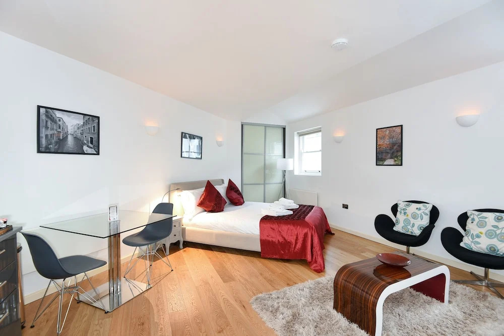 Отель Duplex Studio Apartment In Kensington, адрес на карте Лондон, 120 North End Road, с описанием номеров и возможностью онлайн бронирования на сайте ВашОтель.RU , стоимость проживания и удобства.