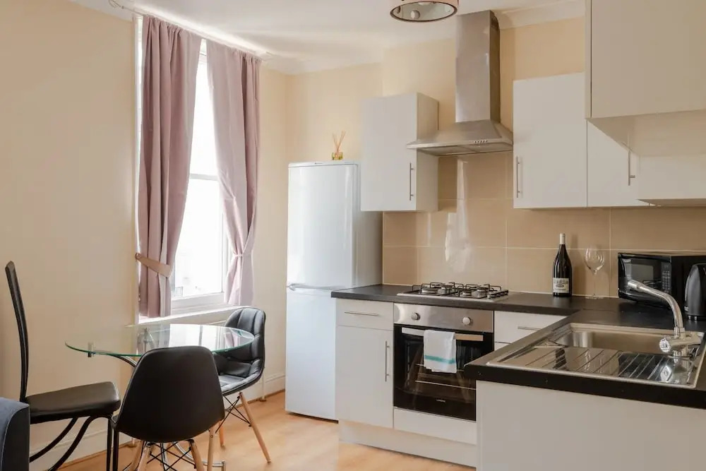 Отель Great 1BR Flat Near Kennington/oval, адрес на карте Лондон, 44B Clapham Road, London SW9 0JQ, UK, с характеристиками номеров и возможностью онлайн бронирования на сайте vashotel.ru , стоимость проживания и удобства.