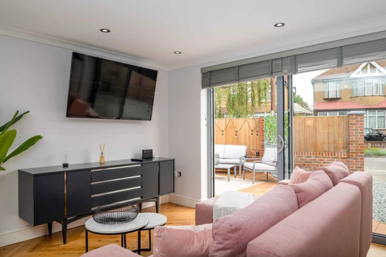 Отель Guestready - Unique Home Near Wimbledon With Gorgeous Deck and Parking, адрес на карте Лондон, Cedar House, 2b Camborne Road, Morden,Greater London, UK, с характеристиками номеров и доступностью онлайн бронирования на ресурсе vashotel.ru , цены проживания и удобства.