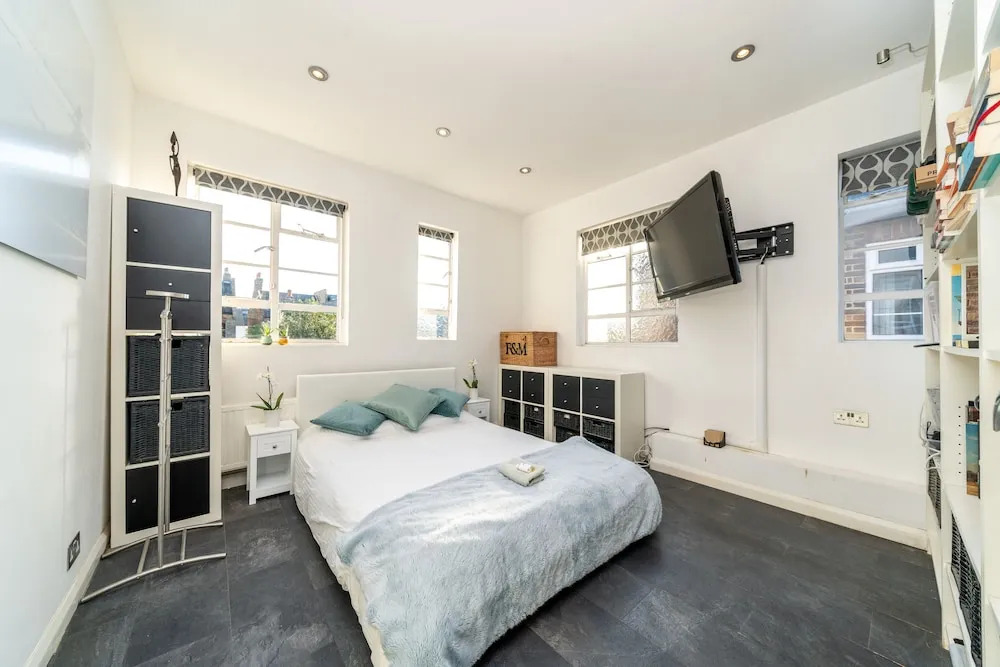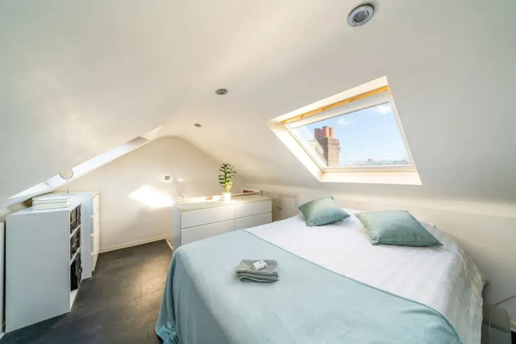 Отель Modern 2Bd Riverside Flat In Fulham, адрес на карте Лондон, Top Floor Flat, 9 Kenyon Street, с характеристиками номеров и доступностью онлайн бронирования на площадке ВашОтель.RU , стоимость проживания и удобства.