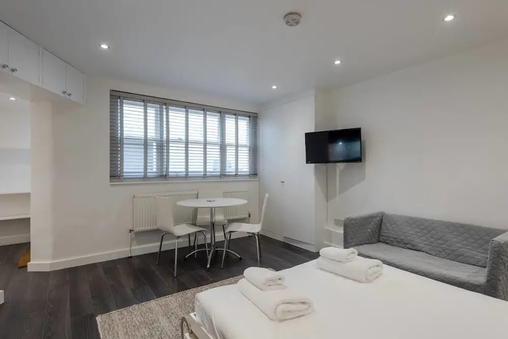 Отель Modern Studio In West Kensington 2 Guests, адрес на карте Лондон, 11A Saint Andrew'S Road, с характеристиками номеров и возможностью онлайн бронирования на сайте vashotel.ru , цены проживания и удобства.