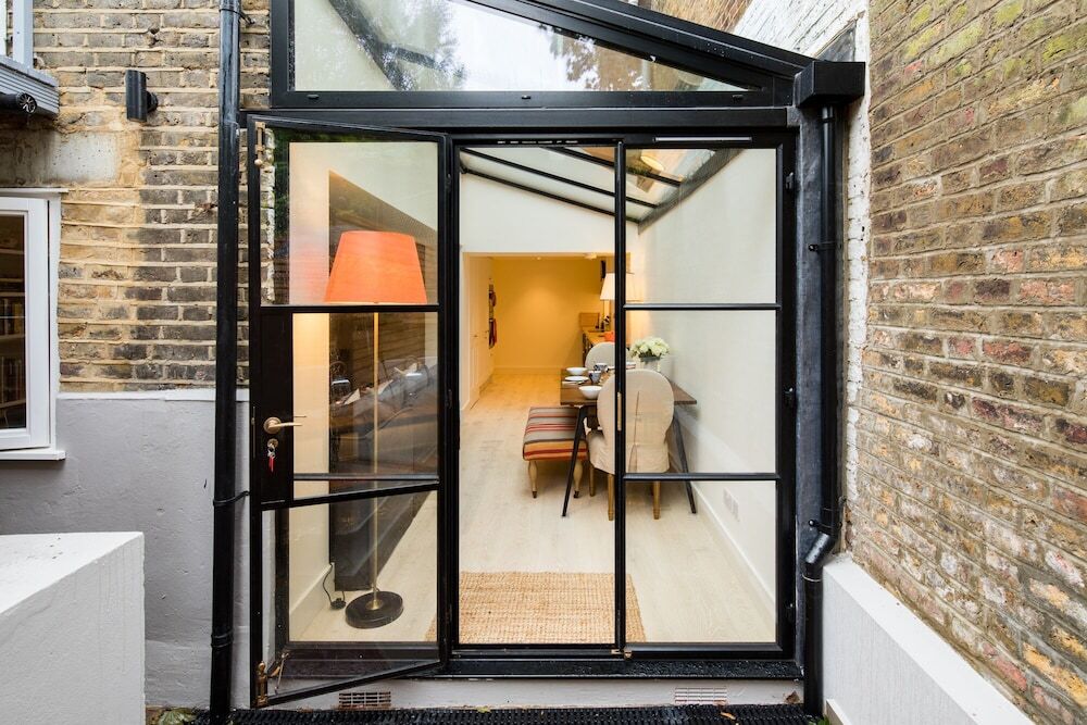 Отель Quiet Classical/modern Designer Garden Flat, адрес на карте Лондон, 7 Radcot Street, с характеристиками номеров и возможностью онлайн бронирования на площадке vashotel.ru , цены проживания и удобства.