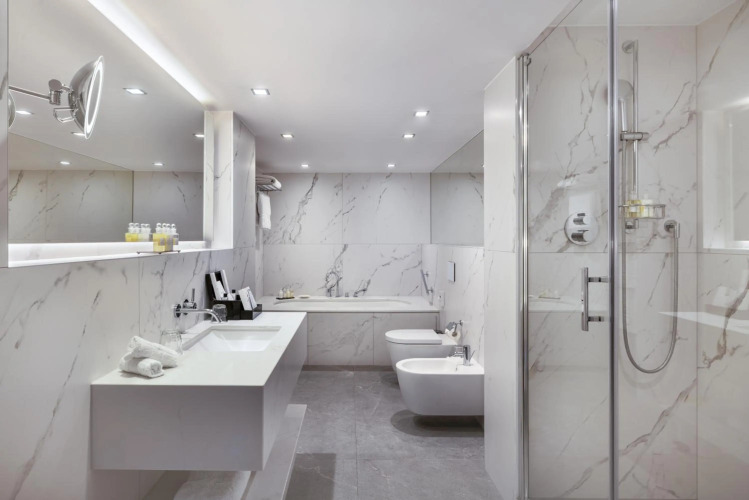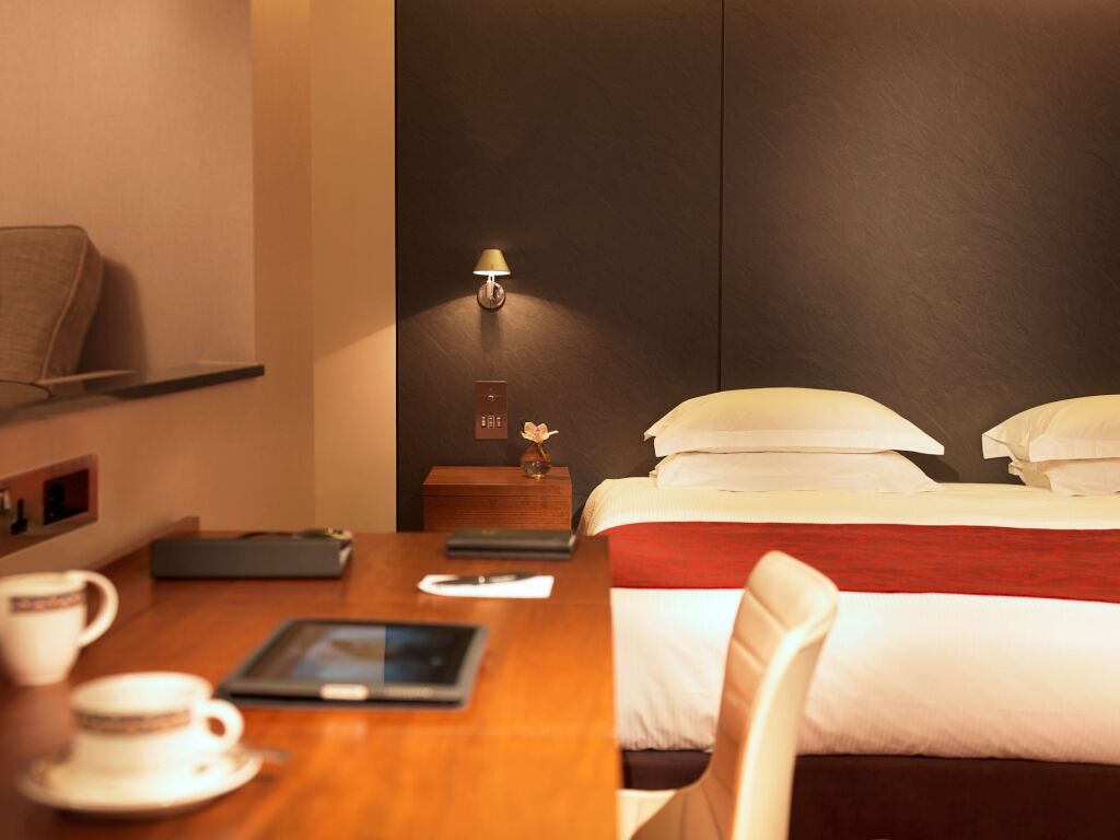 В номере вы найдёте DVD-плеер, будильник, душ, телевизор, мини-бар, халат и тапочки. Оснащение зависит от выбранной категории номера.