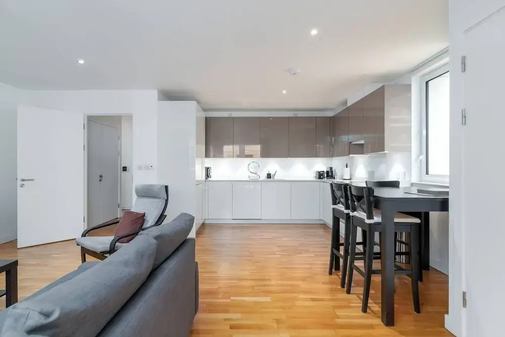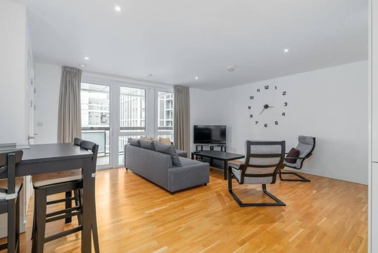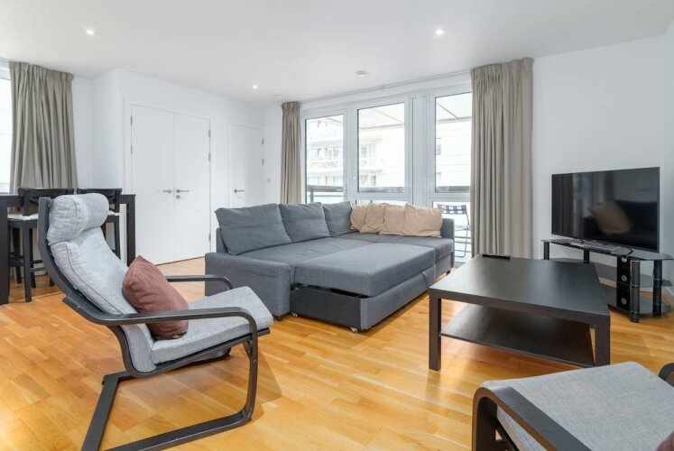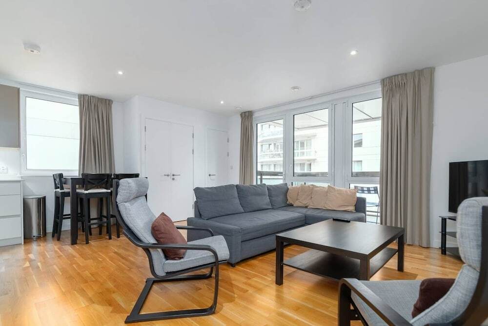 Отель Stunning 3BR Flat in East Village W/balcony, Fits 9 3 звезды, адрес на карте Лондон, Vega House Ursa Mansions, 17 Prize Walk, с описанием номеров и возможностью онлайн бронирования на площадке vashotel.ru , цены проживания и удобства.