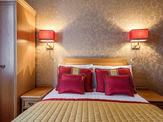 Номер уютно обставлен и оснащён необходимым, чтобы отдохнуть после долгого и насыщенного дня. Имеются телевизор. Оснащение зависит от выбранной категории номера.