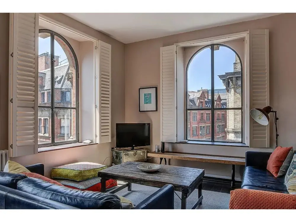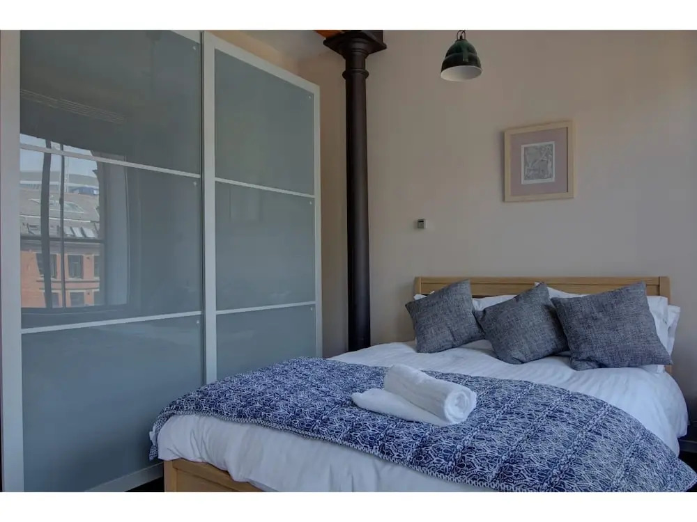Отель Greater Manchester Warehouse Apartment for up to 4, адрес на карте Манчестер, Flat 303, 63 Bloom St, с характеристиками номеров и возможностью онлайн бронирования на сайте ВашОтель.RU , цены проживания и удобства.