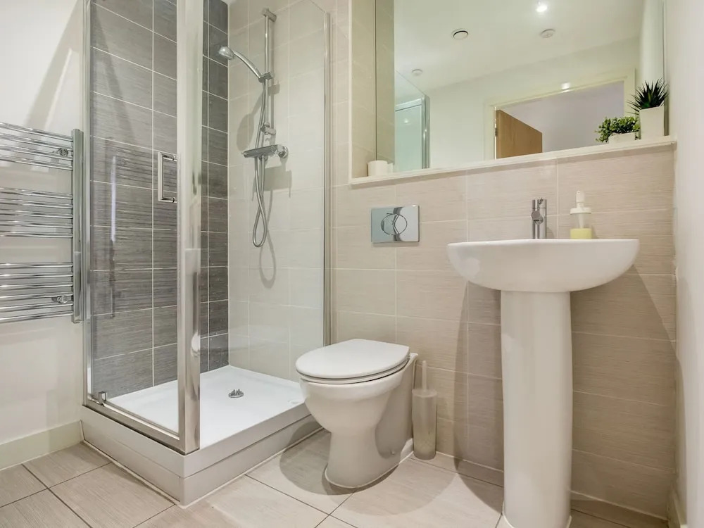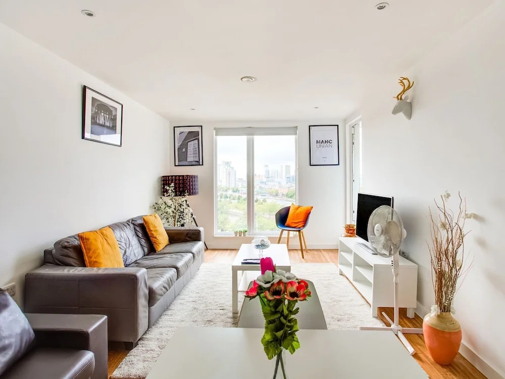 Отель Plush Apartment in Manchester Near IWM North, адрес на карте Солфорд, Elmira way, с характеристиками номеров и правом онлайн бронирования на ресурсе vashotel.ru , стоимость проживания и удобства.