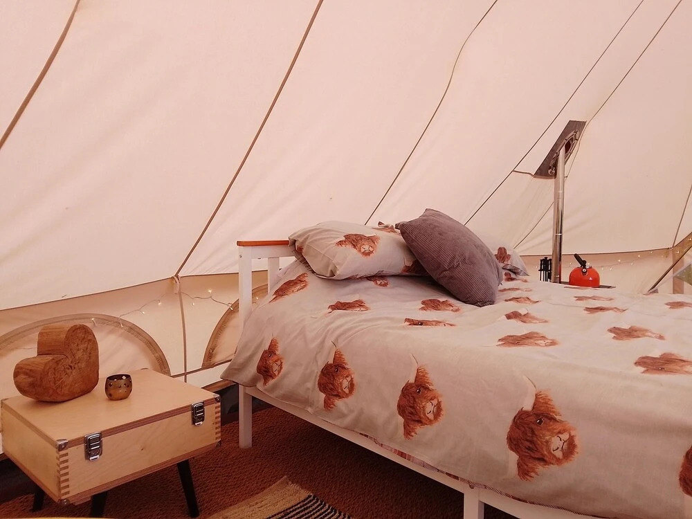 Отель Chestnut Luxury Emperor Bell Tent, With log Burner 3 звезды, адрес на карте Солтберн-бай-зе-Си, Clover Hill Farm Glamping and cottages, с характеристиками номеров и правом онлайн бронирования на сайте ВашОтель.RU , цены проживания и удобства.