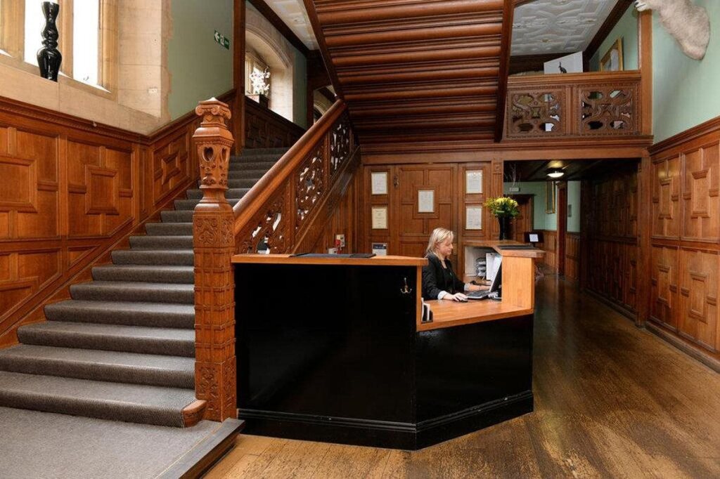 Роскошный отель Eynsham Hall располагается в потрясающем особняке якобинского стиля, который является памятником архитектуры 2-й категории. Отель обставлен дорогой антикварной мебелью и окружен живописным парком общей площадью 3000 м² с фонтанами и аллеями. В нем царит уютная и спокойная атмосфера.