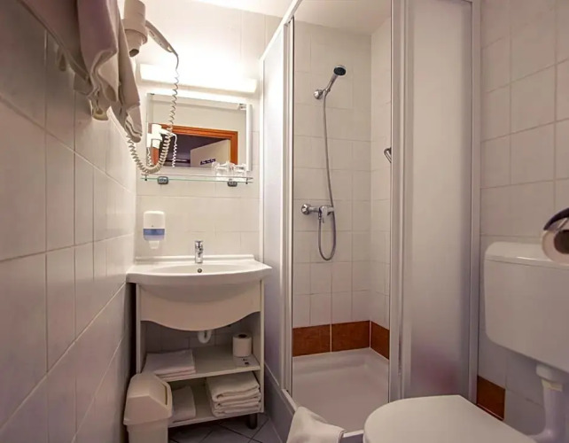 В номере вас будут ждать душ, телевизор и халат. Оснащение зависит от выбранной категории номера.