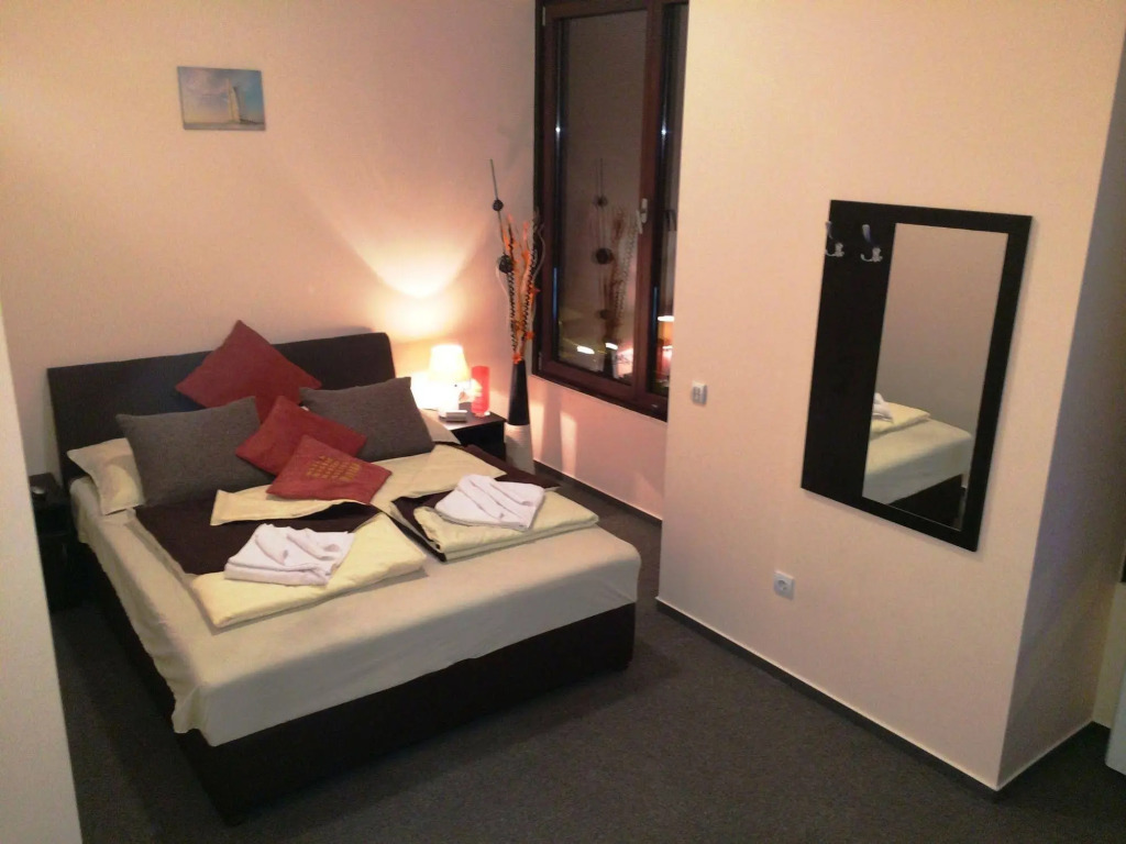 В номере вас будут ждать душ, телевизор и тапочки. Оснащение зависит от выбранной категории номера.