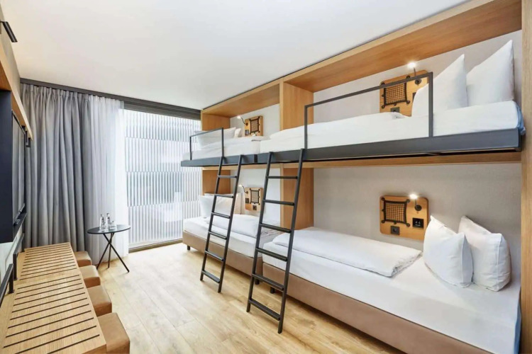В четырёхместном номере спальные места — две двухъярусные кровати или 4 односпальные кровати.