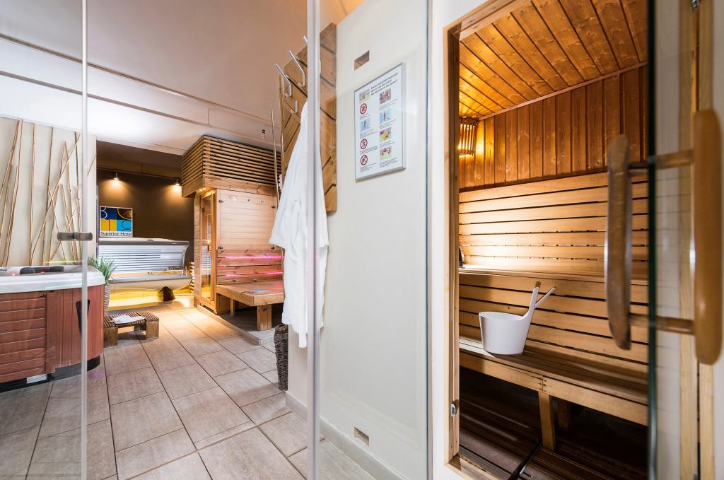 Оздоровительный уголок отеля состоит из финской и инфракрасной сауны, гидромассажной ванны и фитнес-центра, которыми можно пользоваться бесплатно. Массажные процедуры проводятся за дополнительную плату.
