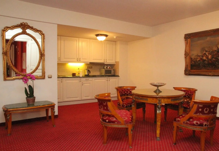 В номере гостей ждут телевизор и мини-бар. Перечисленные услуги есть не во всех номерах.
