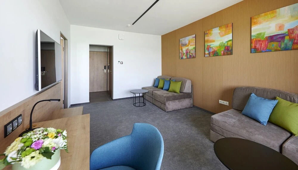 Можно организовать деловую встречу, переговоры и даже собеседование. Для этого предусмотрен конференц-зал. Дети будут рады! Работает детская игровая комната. Удобно для гостей с ограниченными возможностями: на верхние этажи гостей поднимает лифт. Дополнительно: прачечная, гладильные услуги и сейф.